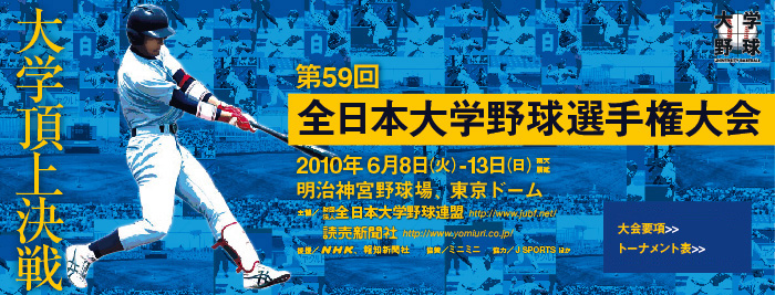 財団法人全日本大学野球連盟 03-5464-5444(10:00〜17:00)