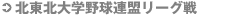 | 第1節 | 4/23(土) | 市営花巻球場 | 富士大3-1岩手大 | 9:00〜 | 青森大1-0盛岡大 | 12:00〜 | 八戸大9-0経法大 | 15:00〜 |